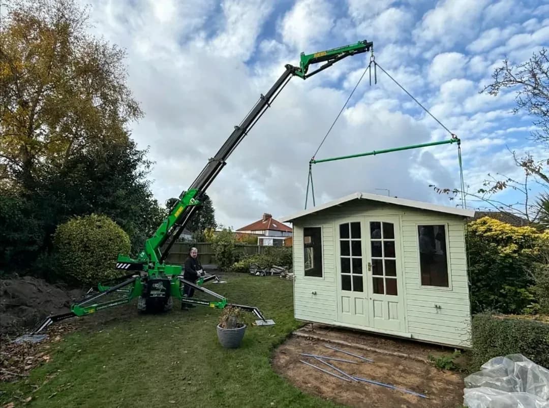 Vor Ort stellte der C6e seine Leistung und Präzision unter Beweis und bewegte sicher ein komplettes Gartenhaus. Dank seiner kompakten Größe, des Elektroantriebs und der hohen Hubkraft ist der C6e die perfekte Lösung für Arbeiten in engen Bereichen, wie beispielsweise in engen Gassen oder dicht besiedelten Wohngebieten.