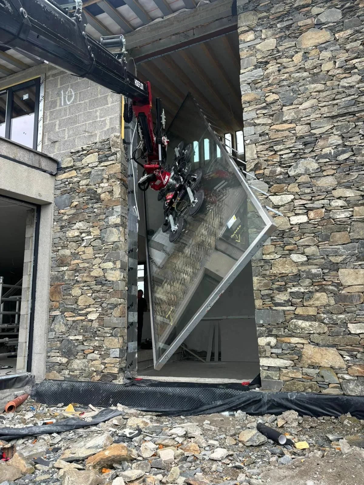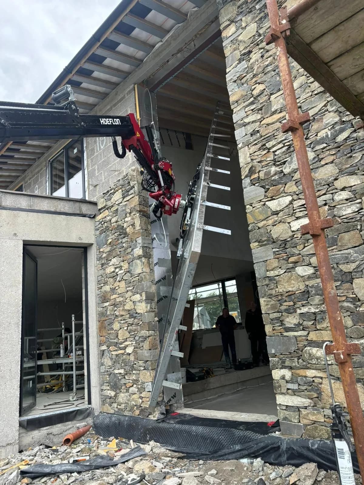 Für dieses Projekt wurde der Hoeflon C30e in Kombination mit dem Multitool, dem Multivac und dem S1000 ausgewählt. Diese Konfiguration erwies sich als optimale Lösung für das sichere und präzise Bewegen der schweren Glasscheiben. Dank der Vielseitigkeit des Multitools, der sanften Kranbewegungen und der hochpräzisen Funksteuerung konnten die Glasscheiben exakt positioniert werden.
